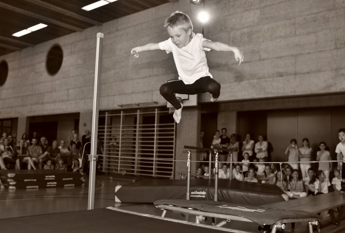 Savoir sauter à la corde à sauter ou au saute-mouton faire des culbutes avant arrière aux anneaux, de l’escalade sur un gros tapis, sauter depuis un trampoline, tout cela accompagné de leçon ludique et à thème ( le père Noël vient à la gym, le lapin de Pâques, carnaval, certains héros de BD etc.)